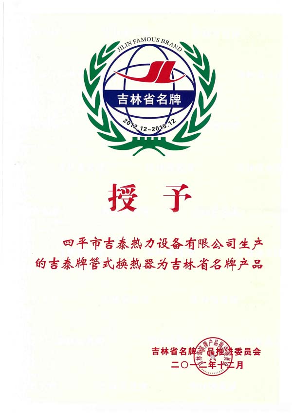 • SIPING JITAI HEAT EXCHANGE EQUIPMENT CO.,LTD. 四平市吉泰熱力設(shè)備有限公司